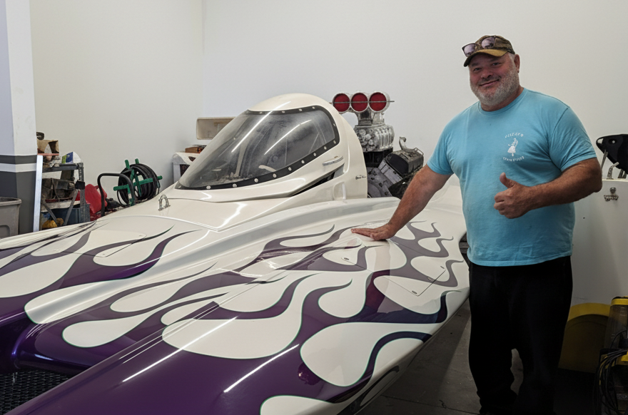 Scott Faggotter is a master boat builder driven by "an addictive chase to win." From his foundation at Firebird Marine in the 90s to his leadership in the Victorian Drag Boat Club, Scott isn't just a check-book racer, he's a technical expert who knows every inch of a hull. In 2024, he resurrected the legendary Problem Child, assembling a dream team to rebuild the 10,000 HP monster. Now running on 90% Nitromethane, the boat is primed to replicate its world-record 3.61-second runs.